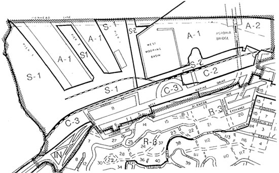 The Astor West Urban Renewal Plan (see below) was adopted by the Astoria City Council on December 16, 2002. The Astor-West Urban Renewal District is located on the west side of Astoria, extending generally from Columbia Avenue west to Smith Point. The area includes property with frontage on West Marine Drive and both land and aquatic area lying north of West Marine Drive (see map below). The renewal area contains 205.5 acres of land and water situated entirely within the City of Astoria. The primary objectives of the Astor-West Urban Renewal Plan are "to improve the physical conditions, functional relationships and visual quality of the area and to eliminate blight in order to create a climate more conducive for private development of property. The Astor-West Urban Renewal Plan will assist in meeting the Community's economic development objectives through redevelopment of key sites, assisting with the construction of needed public facilities, improving transportation and utility facilities in the renewal area, rehabilitation of older and historic structures, and creating public amenities." The maximum indebtedness of the Astor-West Urban Renewal Plan is $9,119,00. The maximum indebtedness is the total amount of funding that can be spent on programs, projects, and administration in the Urban Renewal District. Projects authorized in the Urban Renewal Plan include construction of the Astoria Conference Center, improvements to streets, curbs, sidewalks, trolley track, water, storm and sanitary sewers, and development and redevelopment assistance. Key projects undertaken in the District were construction of utility improvements adjacent to the Holiday Inn Express Hotel (204 W Marine Drive), extension of the River Trail through the Port of Astoria, the Red Building (20 Basin Street), and Maritime Memorial Park (10 Bay Street). The cornerstone project for the near future is the development of a facade improvement loan program.
