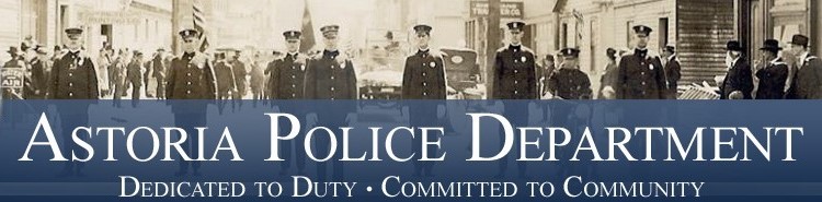 Astoria Police Department has been serving our community since 1876. Our motto - Dedicated to Duty - Committed to Community - is the foundation of our policing philosophy. We provide law enforcement services for the City's residents and visitors 24 hours every day and places particular emphasis on responding to the community's calls for service, investigating crimes and traffic enforcement.